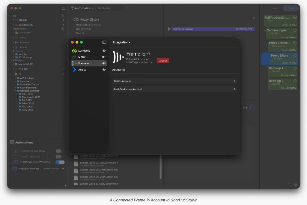 Cloud collaboration has become essential on set, and Frame.io sits at the center of that workflow for many productions. With this update, ShotPut Studio now offers a native Frame.io integration, making it easier than ever to move camera originals, proxies, and deliverables directly into the cloud as part of your existing Studio workflows.
