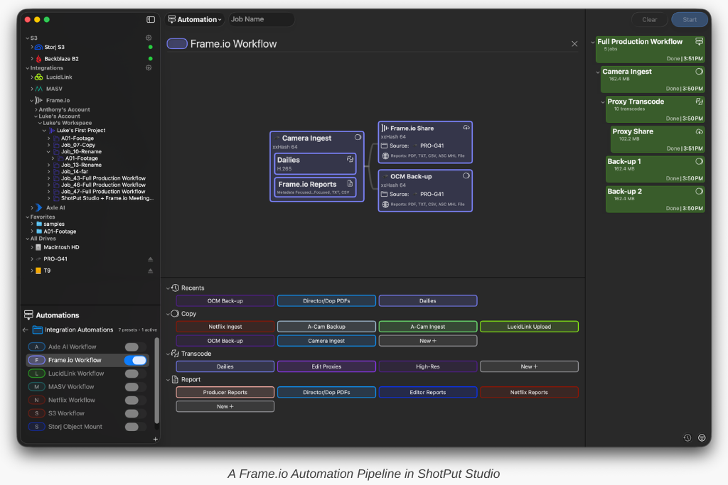 Using ShotPut Studio, they then build a complete automation pipeline that includes all of these steps.
