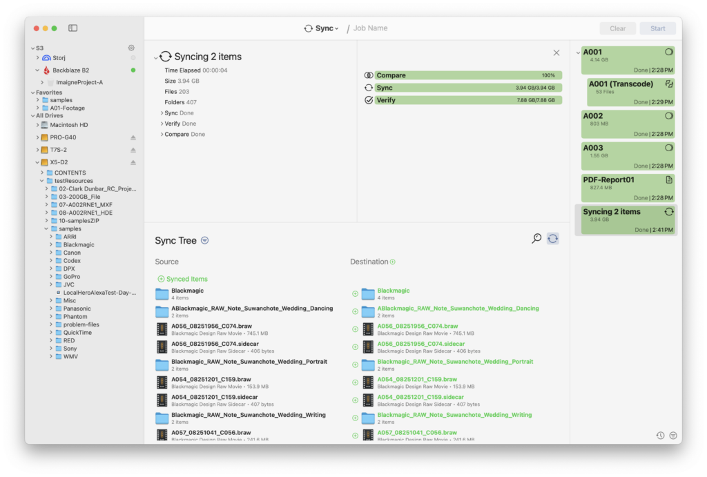 Whether you’re on set or in post, this tool is sure to become your new best friend as you effortlessly compare and synchronize files and folders between two directories. Simply designate a Source and a Destination, and let the tool do the rest.