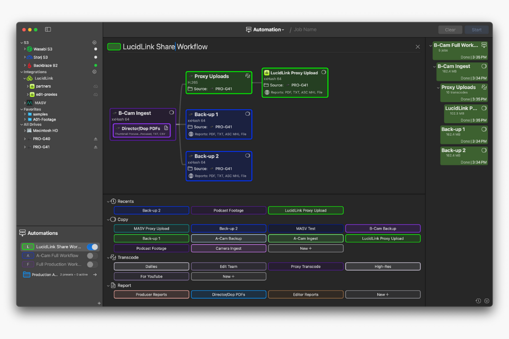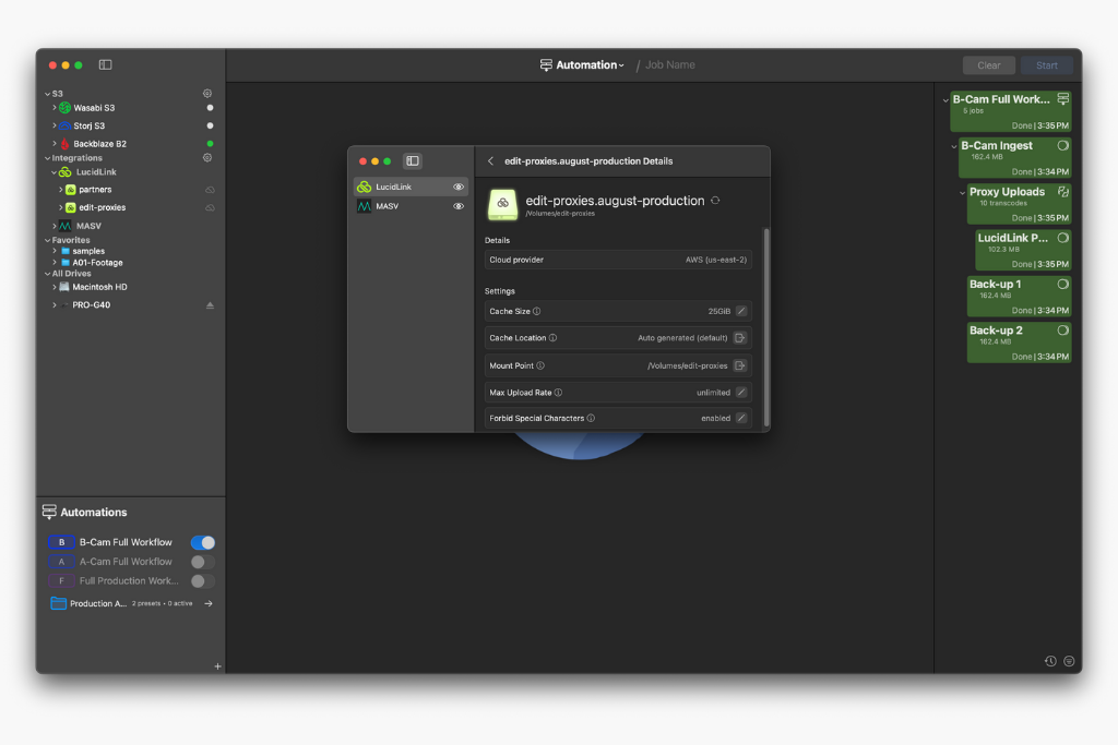 LucidLink’s cloud storage is now directly accessible in ShotPut Studio, letting you upload camera originals and transcodes straight to a filespace during an automation, perfect for distributed teams and cloud-first post workflows.