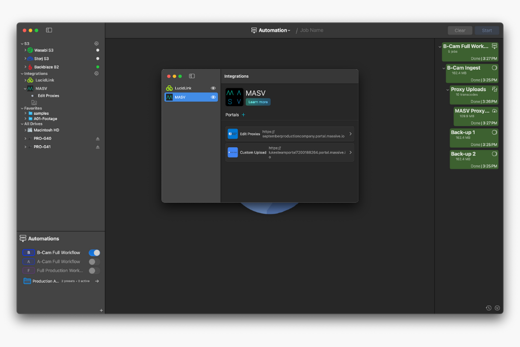 4. Stream camera originals or transcodes directly into LucidLink for immediate availability worldwide.